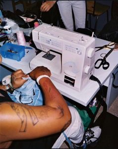 Sobre: Um espaço onde podes trazer qualquer peça de roupa que queiras para atualizar/retrabalhar/acessorizar através de costura/tingimento/corte com a ajuda e orientação de Kahumbi – elu/delu (@kahumbi).
